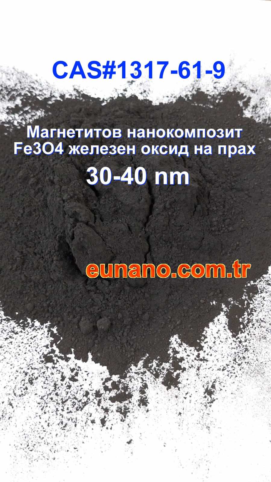 Черният железен оксид магнетит играе много полезна роля в повечето от гореспоменатите индустрии. Можете да закупите прах Fe3O4 (международен продуктов код CAS#1317-61-9) с размер на частиците 20nm или 30-40nm с гаранция от EUNANO.