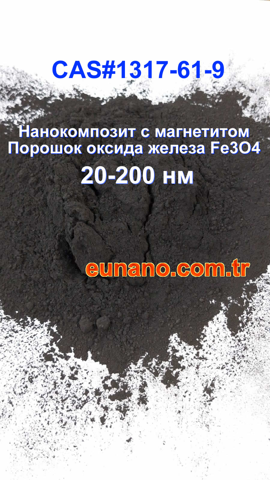 Fe₃O₄ — это природный минерал оксида железа, известный как магнетит. Он черного цвета и обладает магнитными свойствами. Он особенно предпочтителен в промышленных, научных и технологических приложениях благодаря своей нанокомпозитной структуре.